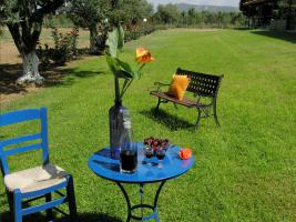 Ειμαστε μεσα σε ενα εξαιρετικα ησυχο και καταπρασινο περιβαλλον με μεγαλη βεραντα, πληρη κουζινα, τηλεοραση, κλιματισμο,