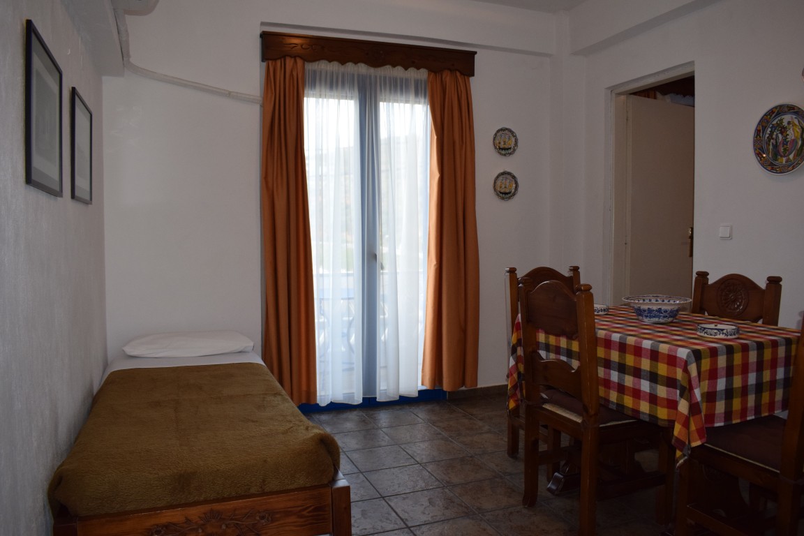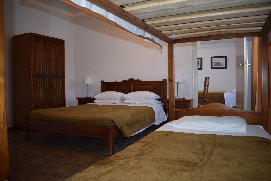 Τα δωμάτια μας είναι κτισμένα κάτω από την εκκλησία του Αγίου Νικολάου, πάνω στο λόφο, με αμφιθεατρικό τρόπο, προσφέροντας πανοραμική θέα και αποφεύγοντας τη καλοκαιρινή κίνηση του λιμανιού.
