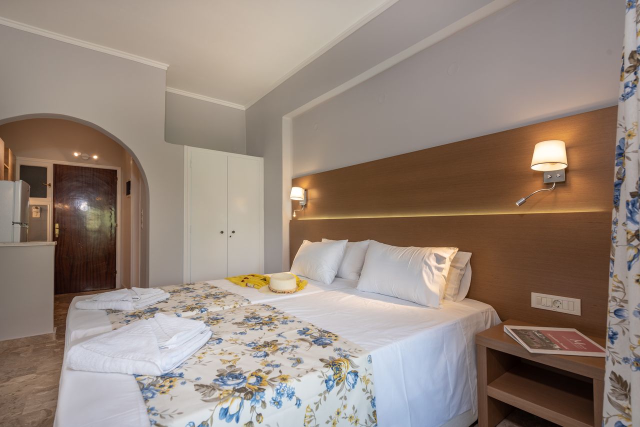 Το Maria studios είναι μια μικρή οικογενειακή επιχείρηση στη λίμνη του Κεριού. Σας υποδέχεται στη Ζάκυνθο και σας υπόσχεται ξεκούραστες  διακοπές μέσα στο πράσινο, σε απόσταση μόλις 600 μέτρων από τη θάλασσα. Η λίμνη του Κεριού βρίσκεται στο νοτιοδυτικό τμήμα του νησιού και αποτελεί  Α’  τουριστικό προορισμό κυρίως για οικογένειες και ζευγάρια . Παραδοσιακές ταβέρνες και εστιατόρια δίπλα στη θάλασσα σας περιμένουν να γευτείτε ντόπιες , μεσογειακές  και διεθνείς  γεύσεις  με θέα  το απέραντο γαλάζιο και το Μαραθονήσι. Ευρύχωρα δωμάτια με θέα τον κήπο, πλήρως εξοπλισμένα με παροχές μαγειρικής , ιδιωτικό μπάνιο, κουζινικά σκεύη, τηλεόραση, wi-fi, κλιματισμό, βραστήρα, πιστολάκι μαλλιών, χρηματοκιβώτιο και όλες τις παροχές που χρειάζονται για μια ευχάριστη διαμονή. Τα δωμάτια με 2 μονά κρεβάτια η ένα διπλό  είναι ιδανικά για ζευγάρια, και τα διαμερίσματα 2 υπνοδωματίων κατάλληλα για οικογένειες, είναι εξοπλισμένα με 1 διπλό και 2 μονά κρεβάτια. Καθαρίζονται καθημερινά ενώ φροντίζουμε ανά τρίτη μέρα να εφοδιάζονται με φρεσκοπλυμένες πετσέτες και σεντόνια. Από τη δεκαετία του ’80 μέχρι σήμερα, οι ιδιοκτήτες  καθημερινά δημιουργούν την ιδανική ατμόσφαιρα για ξεκούραση και χαλάρωση. Σήμερα στο Maria Studios θα σας υποδεχτεί  η Μαριέττα και ο Στέφανος καθώς και τα δυο τους παιδιά ο Τάσος και η Μαρία. Με γνώμονα την εμπειρία τους αλλά και την νεανική τους  ματιά, έχουν ανακαινίσει όλους τους χώρους με απαλά  χρώματα, καινούρια έπιπλα και στρώματα και έχουν δώσει στα δωμάτια μια έντονη καλοκαιρινή φρεσκάδα για να απολαύσετε στο έπακρο τη διαμονή σας. Η οικογένεια της Μαριέττας και του Στέφανου βρίσκεται συνεχώς δίπλα σας που με έντονη την αίσθηση φιλοξενίας είναι διαθέσιμη να λύσει οποιοδήποτε πρόβλημα και να σας βοηθήσει να γνωρίσετε τις ομορφιές του νησιού με τον καλύτερο τρόπο. Στο πλούσιο πρωινό που θα σας σερβίρεται καθημερινά θα αναγνωρίσετε πως η Μαριέττα λατρεύει την μαγειρική. Σπιτικές μαρμελάδες και γλυκά του κουταλιού, φρούτα και λαχανικά του κήπου μας , καφές  ή τσάι με ζάχαρη ή μέλι και σπιτικοί λουκουμάδες  ή κέικ, όλα φροντισμένα  από την ίδια.Ρωτήστε μας για το μενού της ημέρας και απολαύστε αυγόφετες, κρέπες, ομελέτες, αυγά, ντόπιο φρέσκο ψωμί ή του τοστ, γιαούρτι  ή γάλα με δημητριακά, ρυζόγαλο ή κρέμες καθώς και ακόμα περισσότερες γεύσεις από τα χέρια μιας σύγχρονης νοικοκυράς.